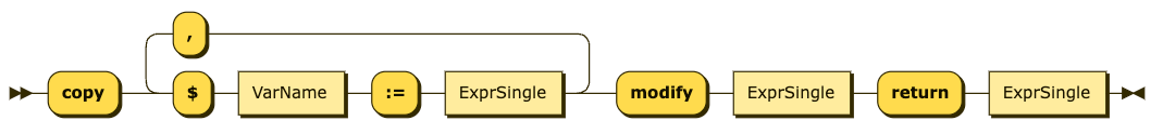 The content of the modify clause may build a complex Pending Update List with multiple updates. Remember that, with snapshot semantics, each update is applied against the initial snapshot, and updates do not see each other's effects.